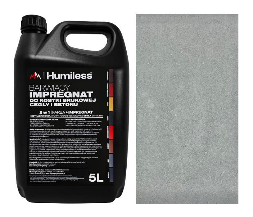 Przedmiotem sprzedaży jest wysokiej jakości Impregnat barwiący do kostki brukowej, cegły, betonu M&M 5l kolor jasny szary